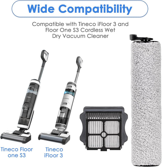 (7 Pieces) Replacement Brush Rollers and HEPA Filters Compatible with Tineco Floor One S3/ iFloor 3 Cordless Wet Dry Vacuum Cleaner, Replacement Parts Accessories Kit, 3 Brush Rollers, 4 HEPA Filters