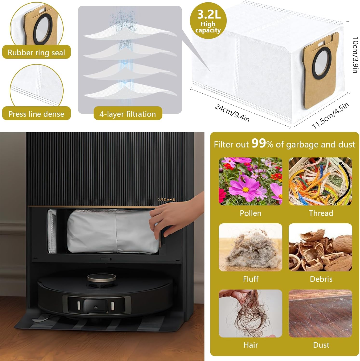 - 【Application】The 14Pcs vacuum bag Compatible with Dreametech L10S Ultra/L10S Pro Ultra Heat/L20 Ultra/L30 Ultra/X30 Ultra/X40 Ultra/L40 Ultra/X50 Ultra/L50 Ultra/L10s Ultra Gen 2 and Mova P10 Pro Ultra/P50 Pro Ultra Robot Vacuum, ensuring a perfect fit for your device. (Please check your device model before ordering)