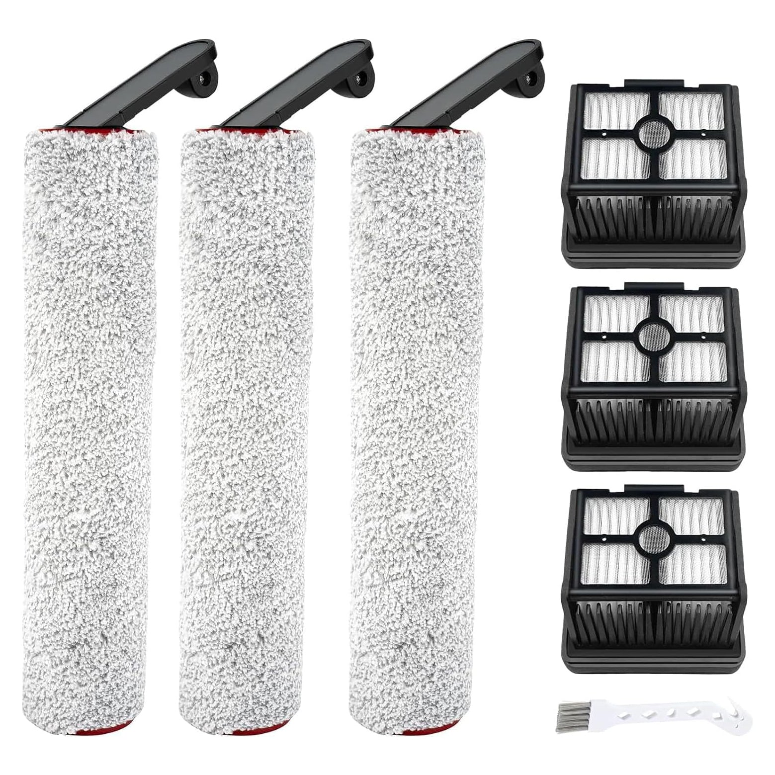 - EXCELLENT PREMIUM QUALITY:You will receive 3 replacement soft roller brushes and 3 vacuum filters, to replace your old ones in time and back up.1 cleaning tool with blades to help you get rid of tangled hairEngineered with a flat cylindrical structure, our brush rollers ensure gentle yet effective cleaning on various hard surfaces, including laminate, linoleum, sealed wood floors, marble, and tiles.