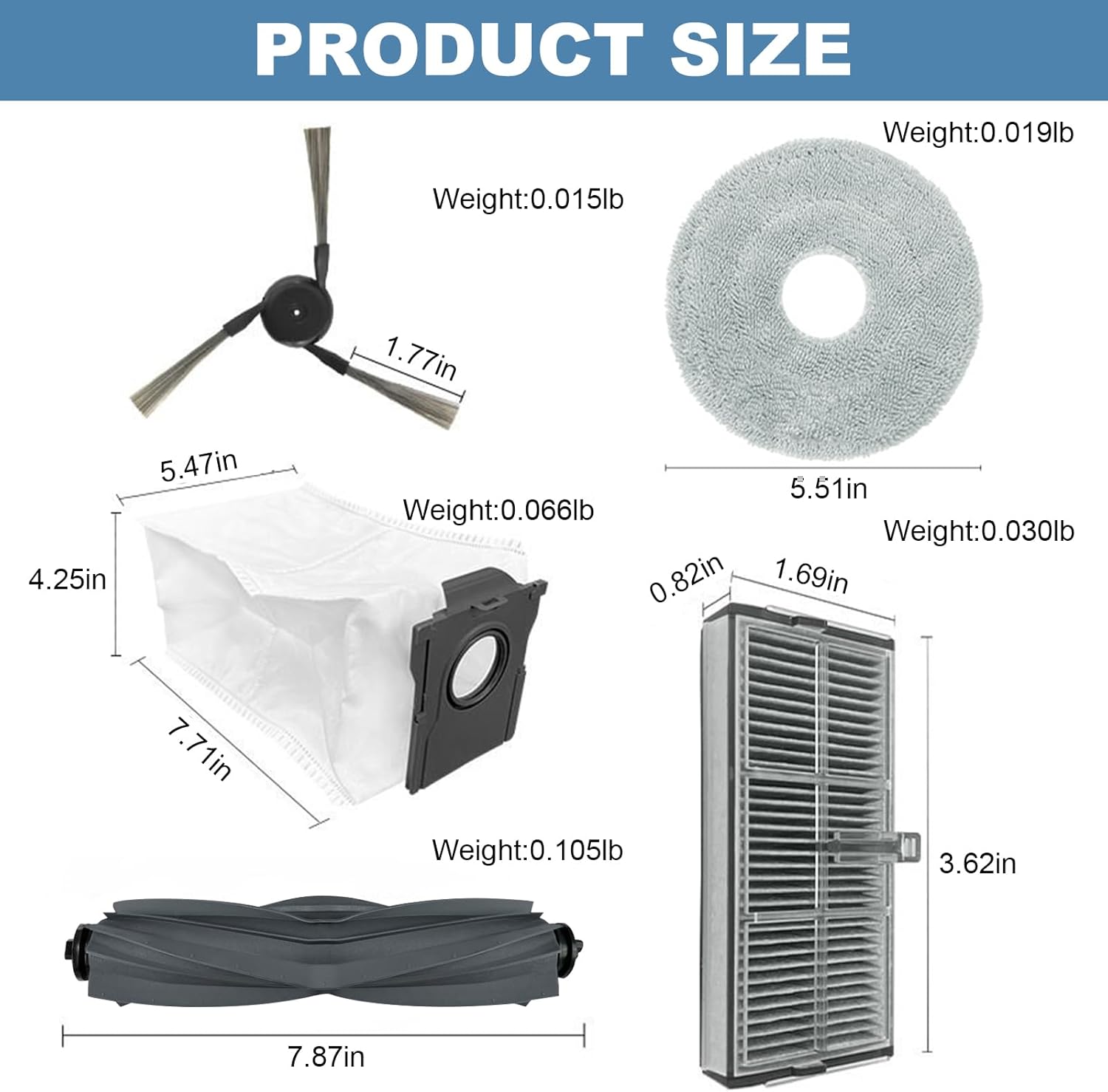 - [Set includes]: 2 Rubber Main Brush+ 6 Filters+ 6 Dust Bags+6 Mop Pads+6 Side Brushes