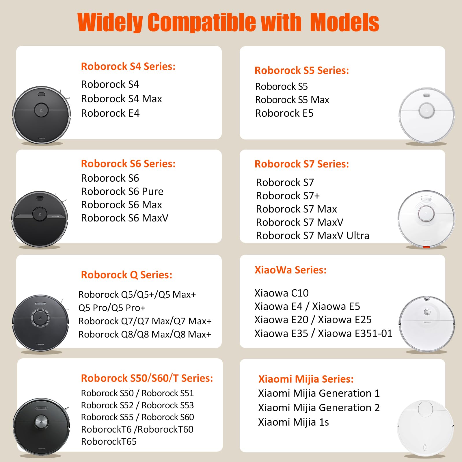 - Compatible with Roborock S4 S5 S6 S7 S8 Q5 Q7 series robot vacuum, Xiaomi Mijia 1st and 2nd Gen series robot vacuum, Xiaowa C10 E5 Series robot vacuum