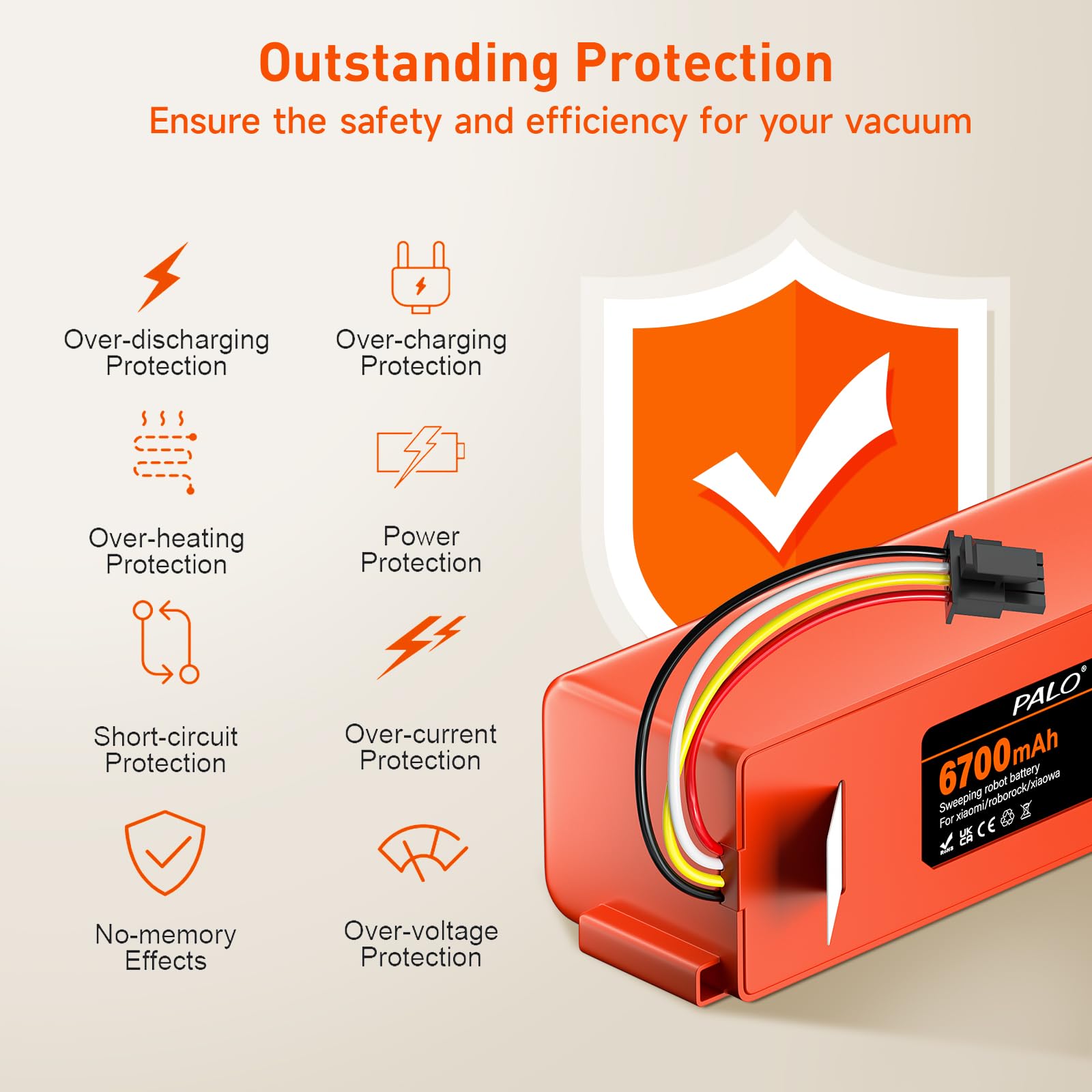 Replacement Battery for Roborock S4 S5 S6 S7 S8 Q5 Q7 series robot vacuum, 14.4V 6700mah