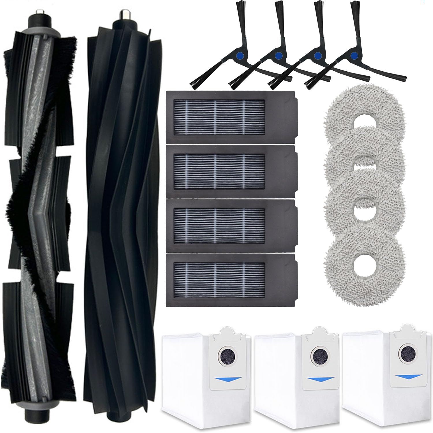 Spare Parts Accessories Kit Compatible With ECOVACS DEEBOT X2 Omni Vacuum Cleaner.1 Main Rubber Brush,1 Normal Main Brush,4 Side Brush,4 Hepa Filters,4 Mop Pads,3 Dust Bags (17 Pack-Black)